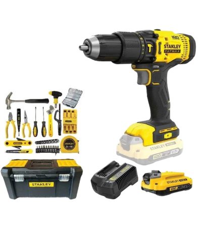 STANLEY SCD711C1H Hammer Drill Driver (20V/13mm/50nm) + Accessory (48 Pcs) + Battery + Charger