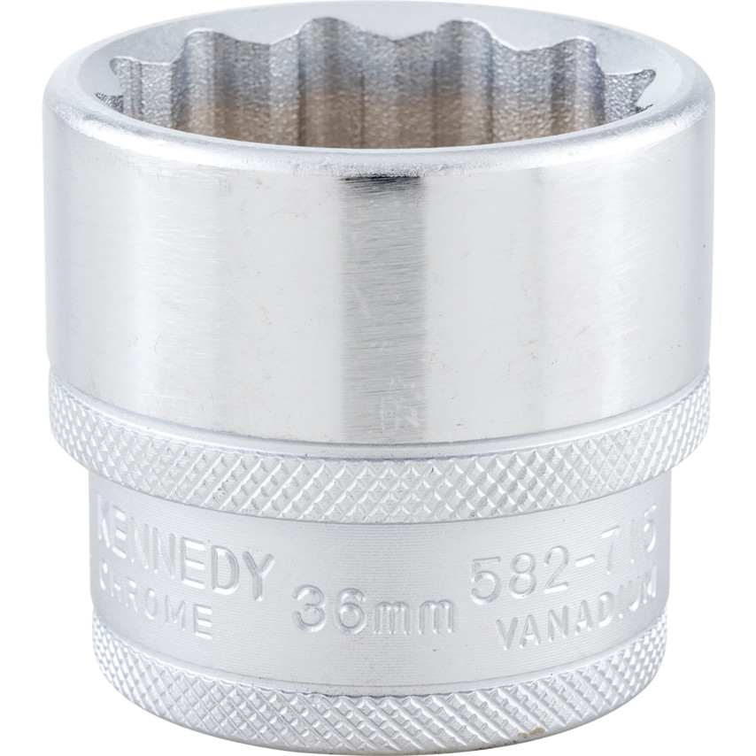 The Kennedy range of 1/2 inch square drive metric bi-hexagon sockets, sized from 8mm to 36mm, delivers exceptional torque and precision. Crafted from durable vanadium steel with a corrosion-resistant finish, these 12-point sockets provide secure engagement and excellent grip on worn or stubborn fasteners. Featuring a ball-retaining groove for positive connection, they are designed for professional use, combining high performance with long-lasting reliability.