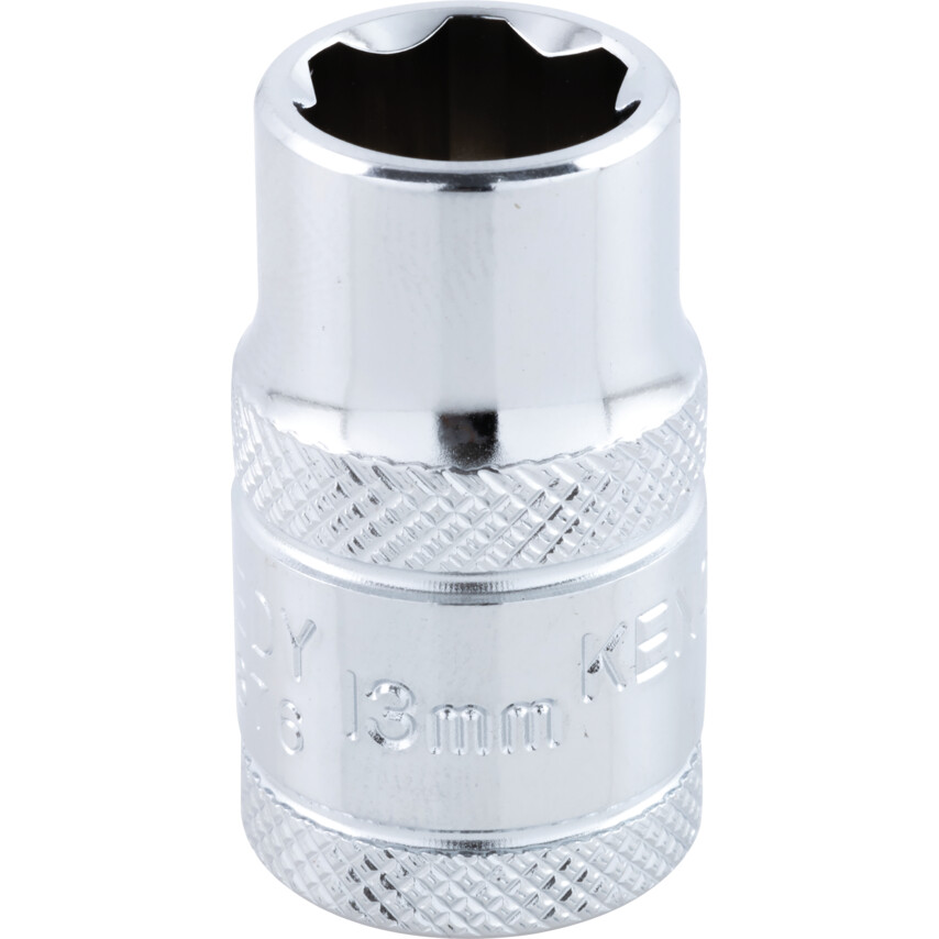 The Ken-Grip® socket offers a new standard of performance with the ability to grip up to 95% of a rounded fastener. It has a unique patented design that grips even worn and rusted fasteners without damaging them and can be used on a wide range of fasteners, including non-metric hexagons and E-Torx® Drive sizes. The double knurl feature gives a high grip which is essential for quick tool change when hands are greasy or oily. Manufactured from chrome vanadium steel, the sockets and accessories are aluminium free and fully chrome plated for an easy clean finish. All products have a 1/2in. square drive and are supplied in metric sizes.