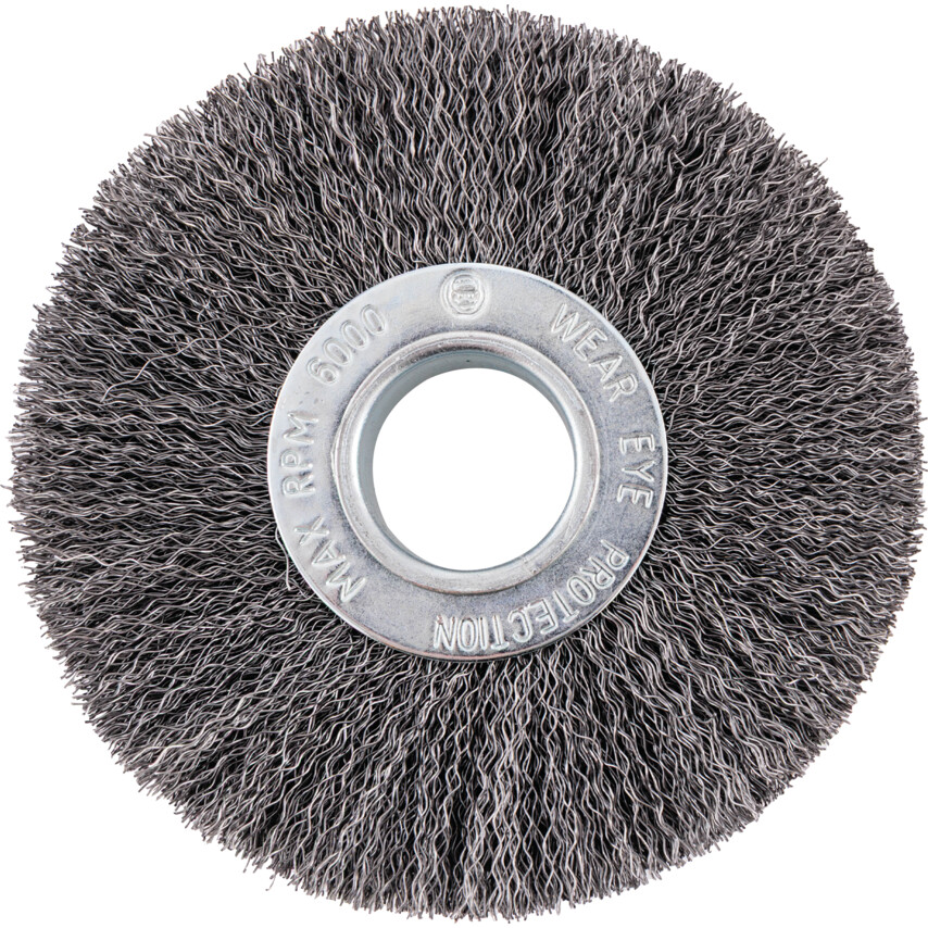 Crimped wire wheel brushes include models designed for de-burring, edge blending, roughening for paint adhesion, removing heat colourisation, finishing, and surface prep.