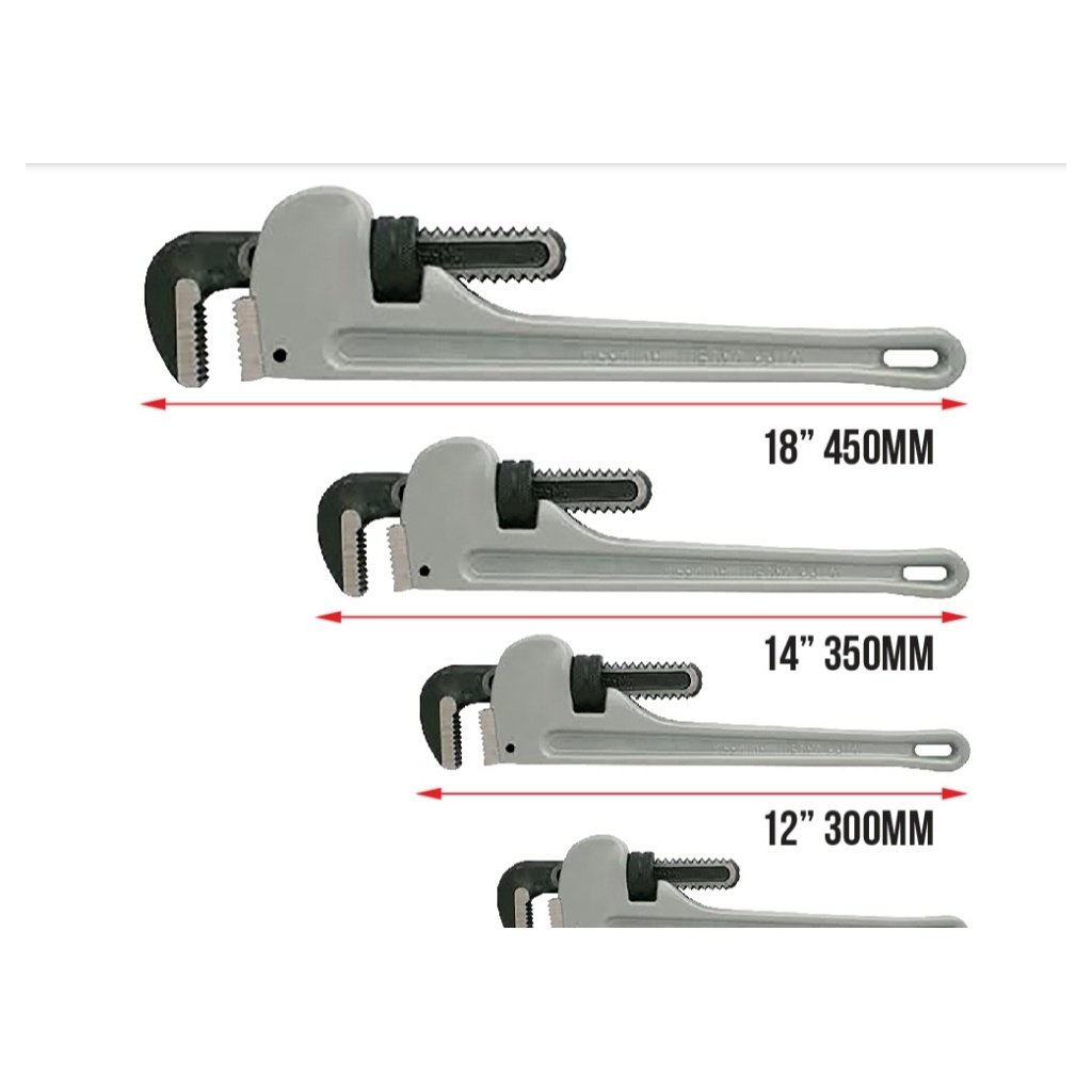 – Super-strength cast aluminium handle, minimum 40% lighter than heavy-duty pipe wrenches.