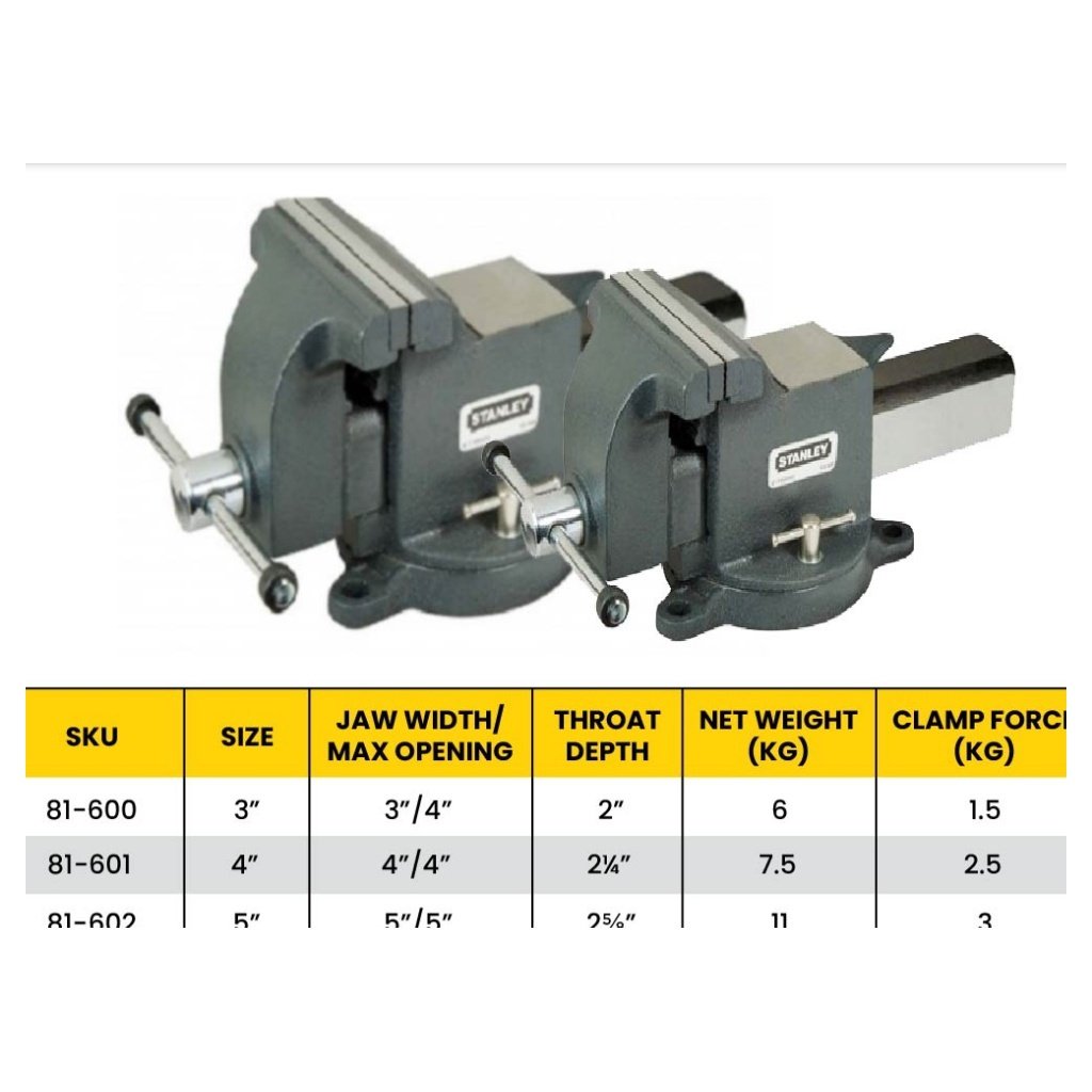 STANLEY Cast Steel Bench Vice Come With Swivel Base 81600 | 3″ | 81601 | 4″ | 81602 | 5″ | 81603 | 6″ | 81604 | 8″
