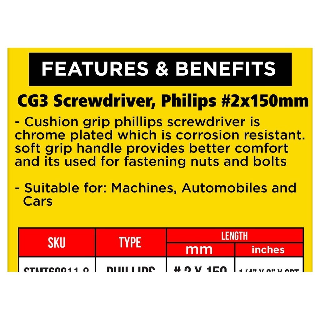 Cushion grip phillips screwdriver is chrome plated which is corrosion resistant. soft grip handle provides better comfort and its used for fastening n…