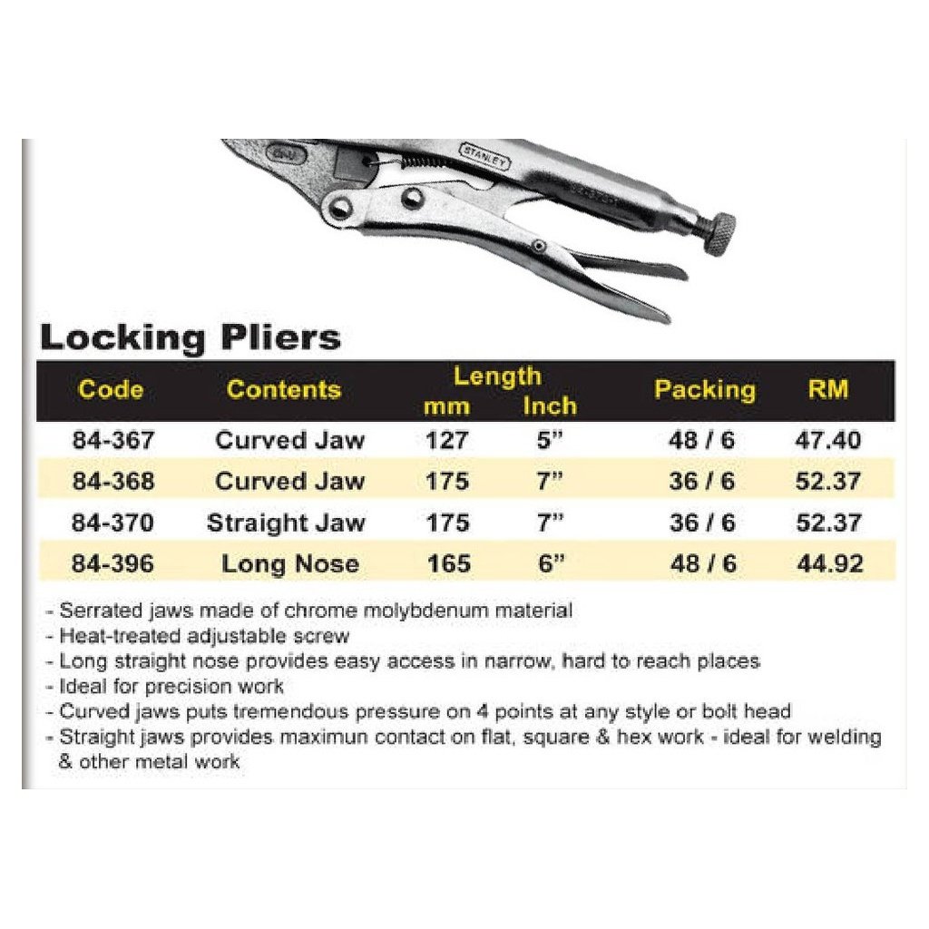 Stanley Locking Pliers Straight Jaw (7”) 84-370-1-S/84-370-1