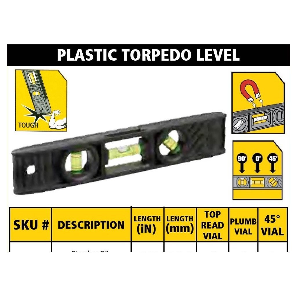 STANLEY Magnetic Torpedo Level STHT42291-8 | 8″ 3 VIALS | STHT42264-8 | 9″ 3 VIALS