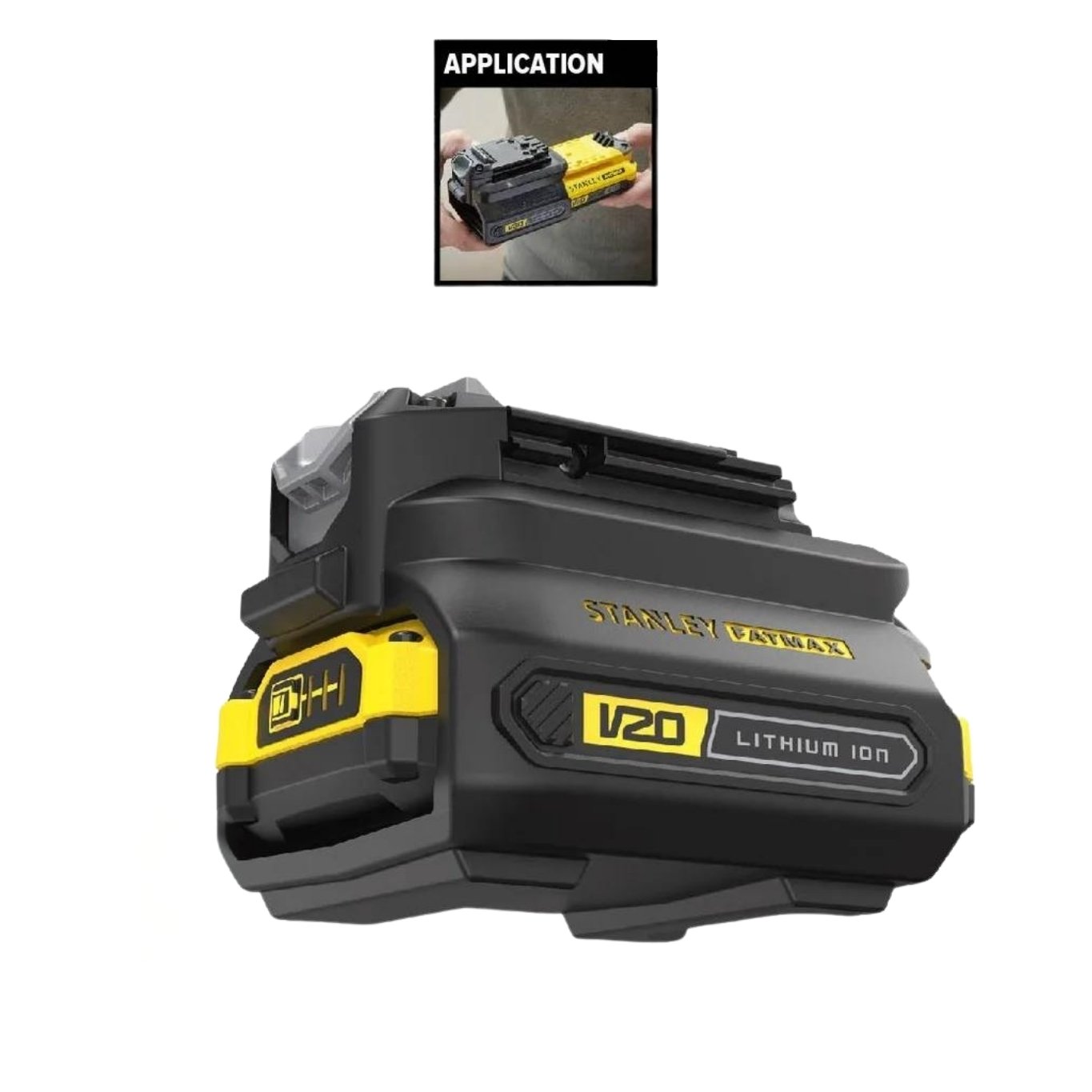 STANLEY SBA100 BATTERY ADAPTOR 20V. CONVERT 18V PLATFORM BATTERY TO 20V PLATFORM BATTERY FOR 1.5AH & 2.0AH 18V BATTERY