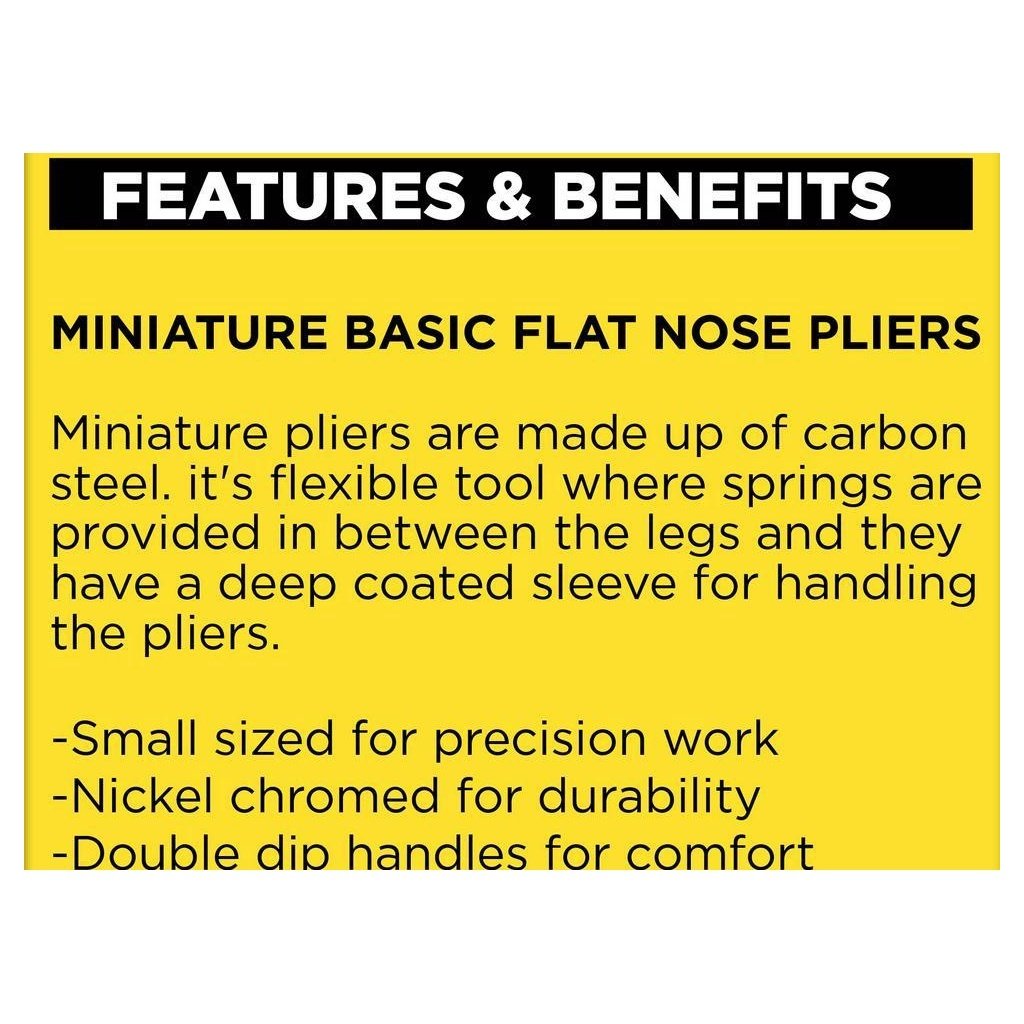 Miniature pliers are made up of carbon steel. it’s a flexible tool where springs are provided in between the legs and they have a deep coated sleeve f…