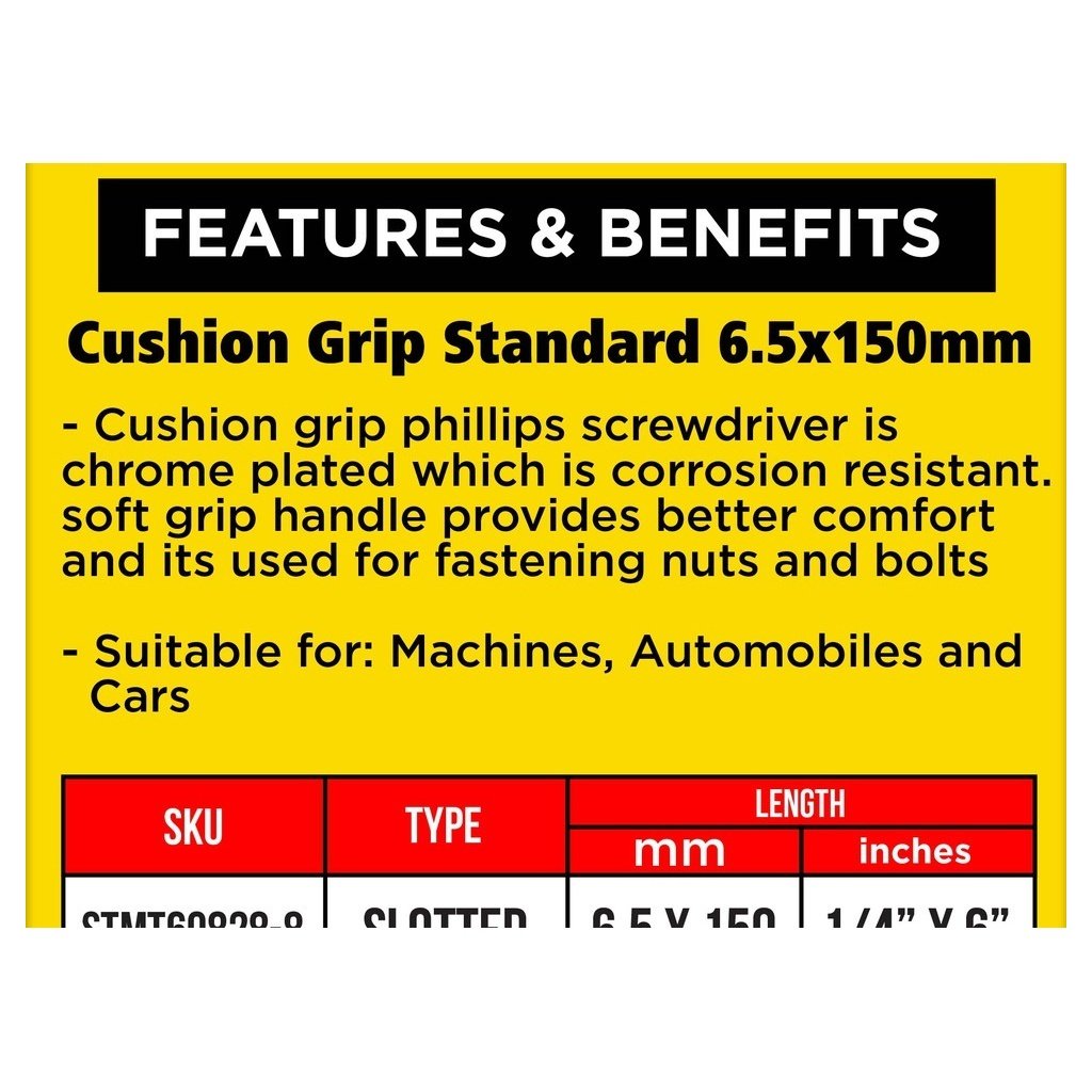 Cushion grip screwdriver is made of high quality steel. cushion grip allows maximum comfort and they are used for fastening and tightening of nuts and bolts.