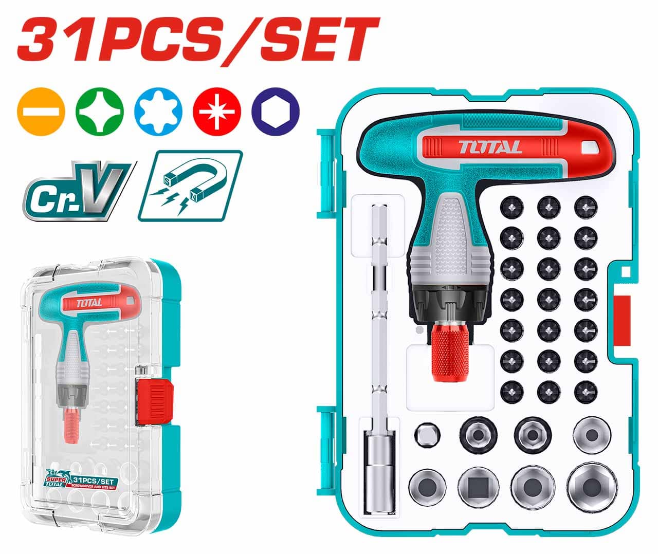 TACSD30316 31 Pcs T-Handle Wrench Screwdriver Set