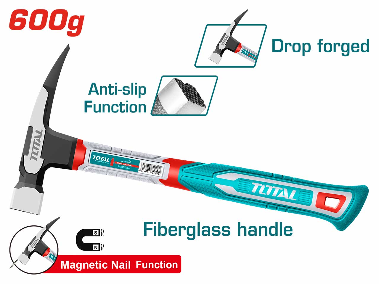 Innovative drop-forged, heat treated 45# Carbon steel hammer head with anti-slip function.