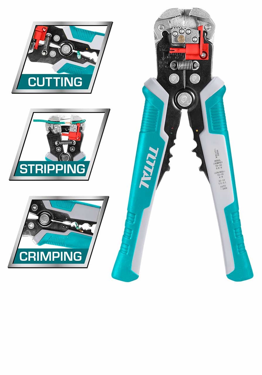 3-in-1 multi-function tool for stripping, cutting and crimping wires.
