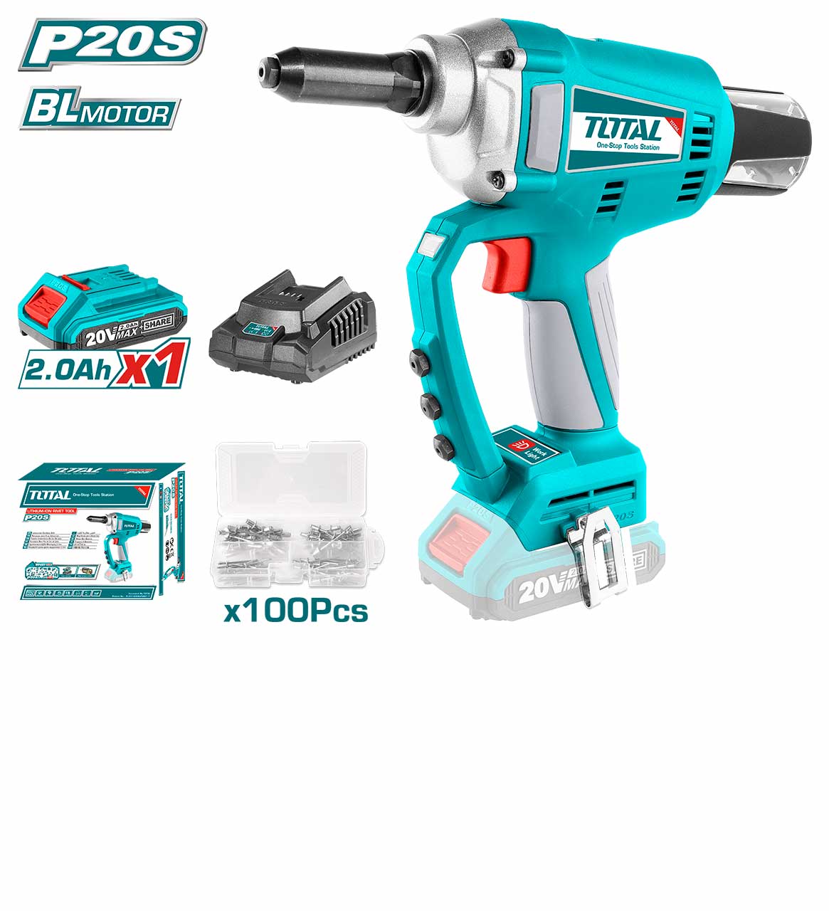 Integrated work light and features a 25mm travel / stroke that sets most rivets in one stroke.