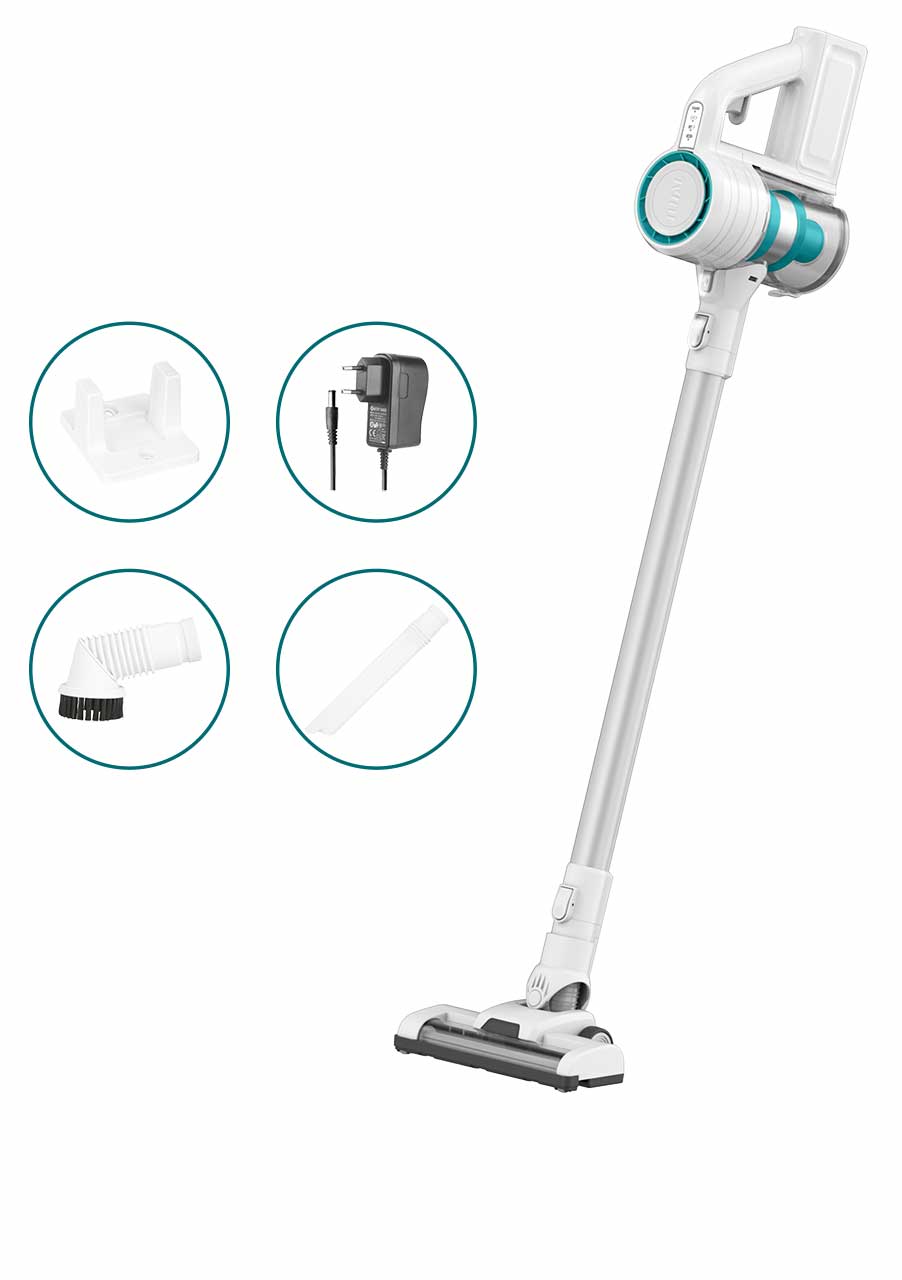 voltage 22.2V ⎓ battery 22.2V 2200mAh Lithium-ion battery charger Charging Time: 4.5 hours charger volts 100-240V ~ 50/60Hz input power 140W max pressure 2200 psi (150 bar) capacity 0.8L with HEPA filter + Multi Cyclone Chamber max vacuity ≥10.0 kPa range 20-35 minutes   Model no. TVCH14111 Weight 3.1kg